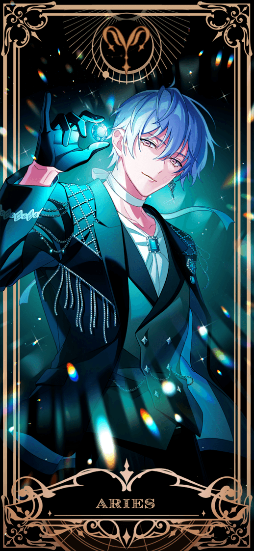 【アクアマリンの夜光】観月 累 【ブラッドストーンの燦然】ルーカス・エラント 【アクアマリンの虹光】音無 叶空 スポットライトの光 |